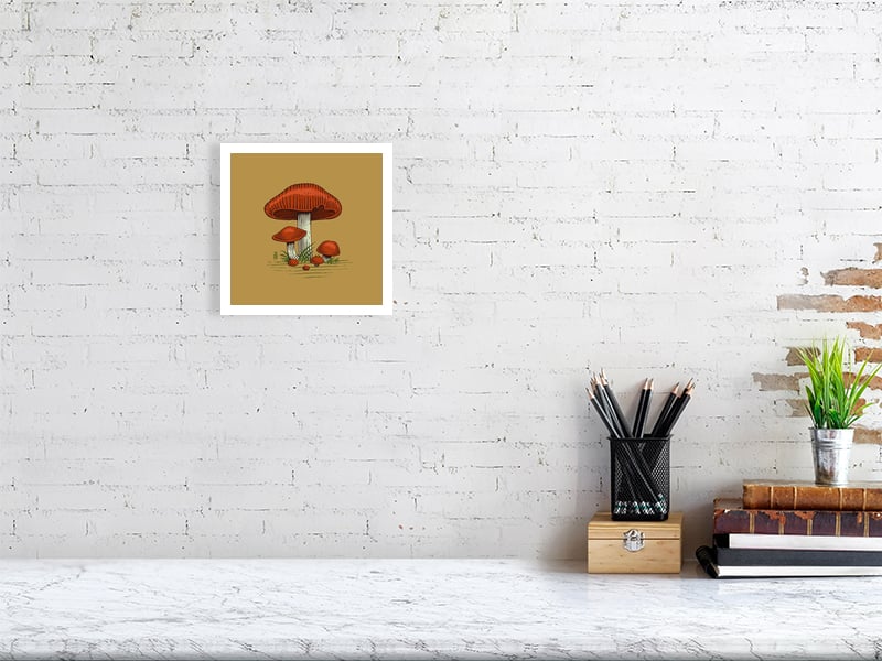 8x8" mushroom illustration printed on Hahnemüle German etching paper.